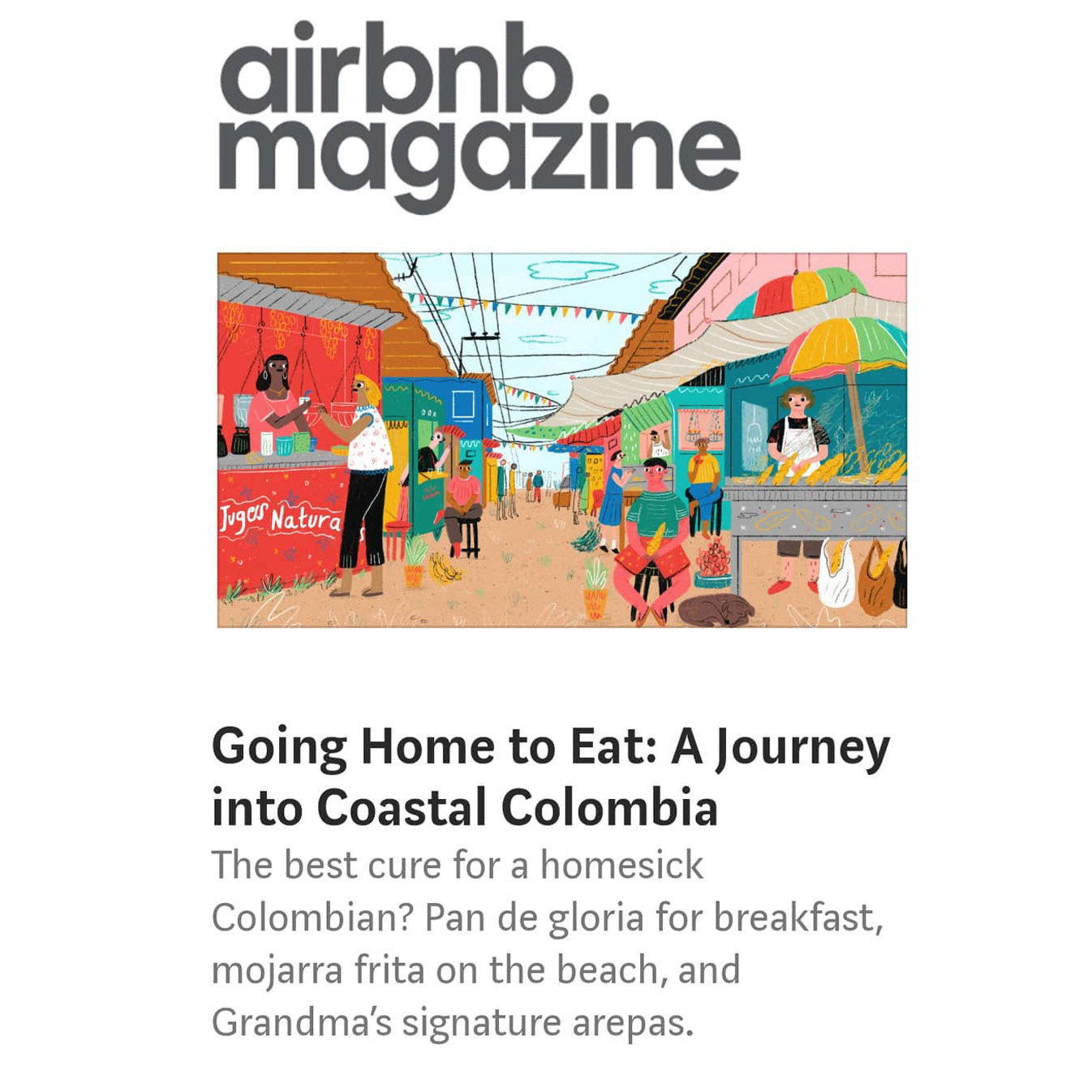 I was commisioned by Airbnb to illustrate the article "Going Home to Eat: a Journey into Coastal Colombia" specifically in the city of Barranquilla. You can read the full article Here